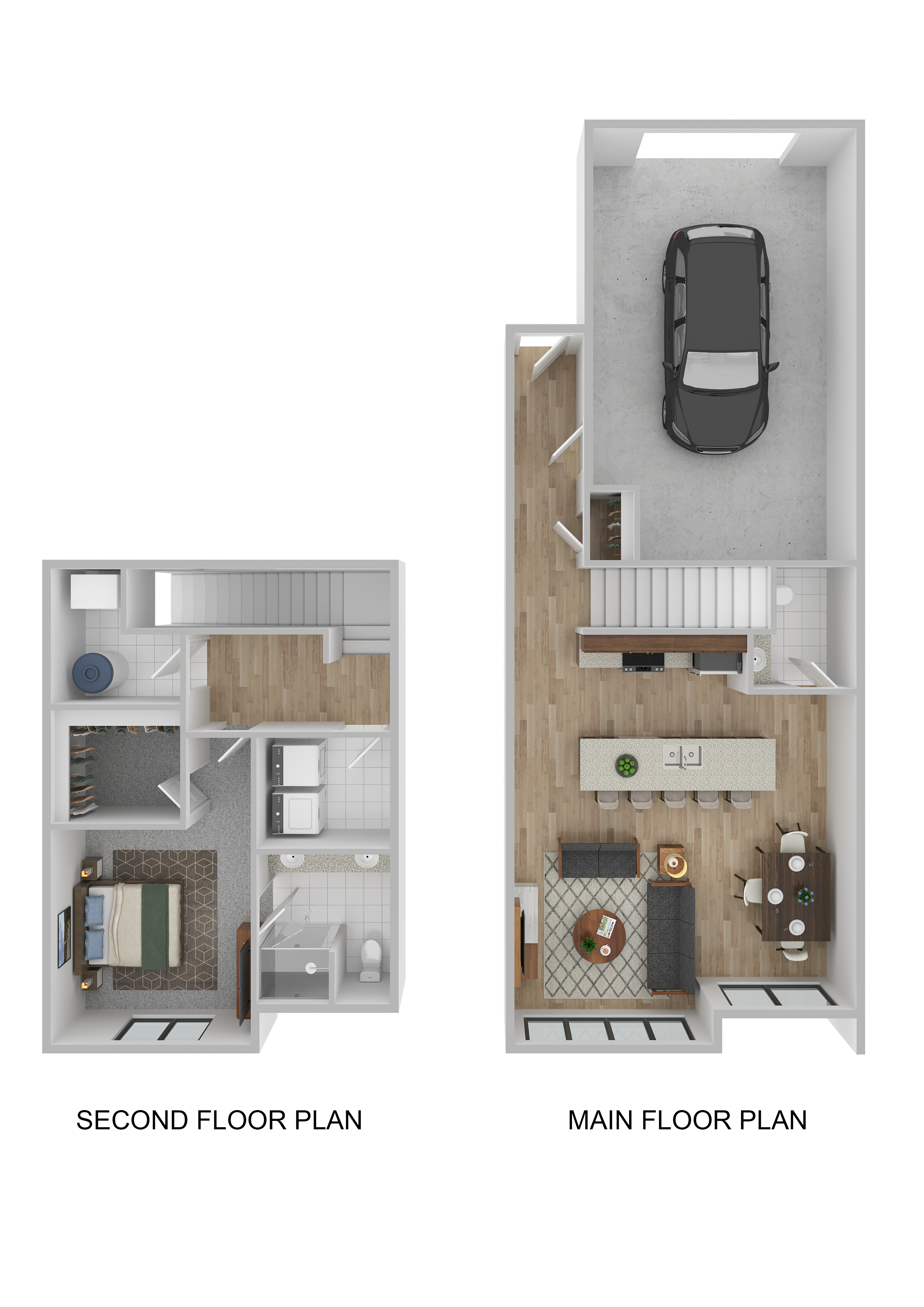 View Floorplans1, 2, and 3 bedroom townhome layouts.